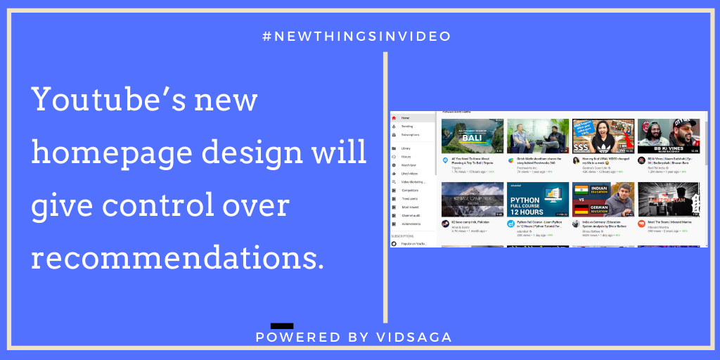 Youtube’s new homepage design gets a cleaner look. The new design has now more space for videos and their titles. Youtube has also introduced a new feature called “Add to Queue” for desktop.