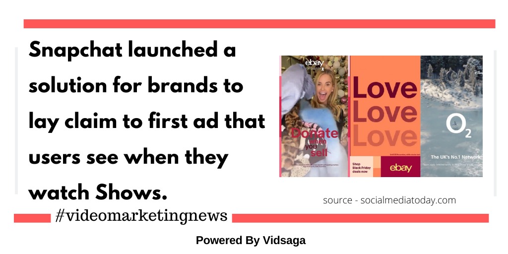 Snapchat launched a solution for brands to lay claim to first ad that users see when they watch Shows.