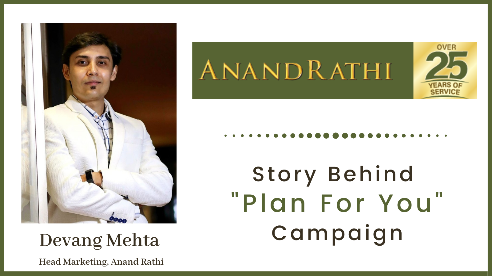 Anand Rathi’s “Plan for you” campaign seems to be an interesting approach to reaching out to prospects and celebrating their 25+ year journey.